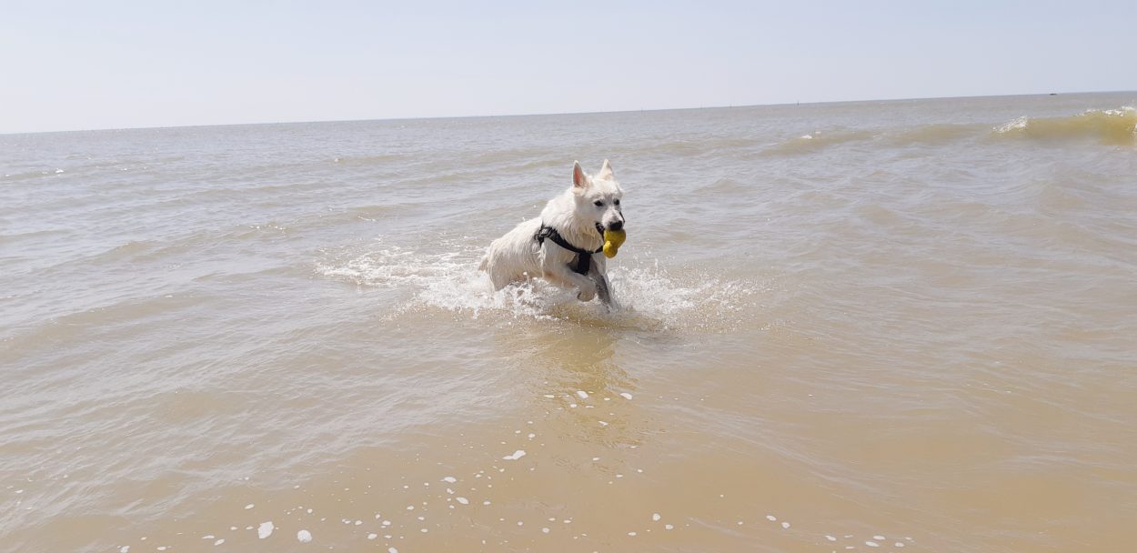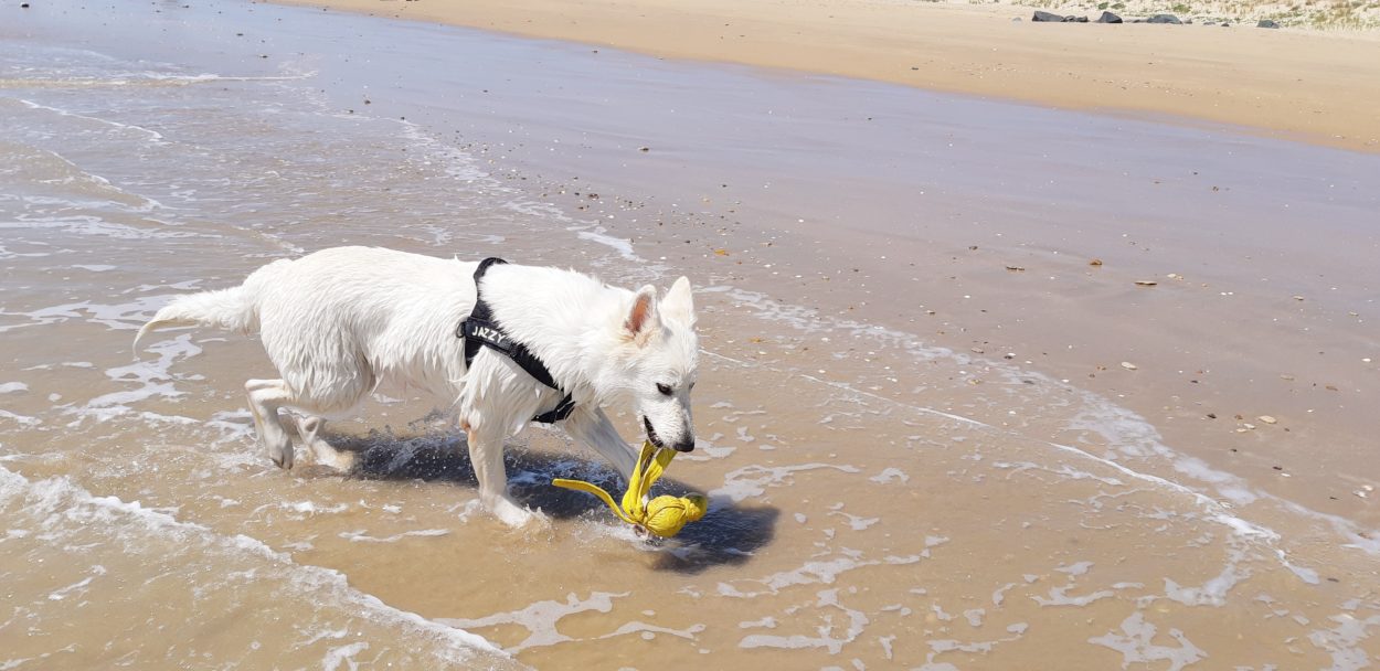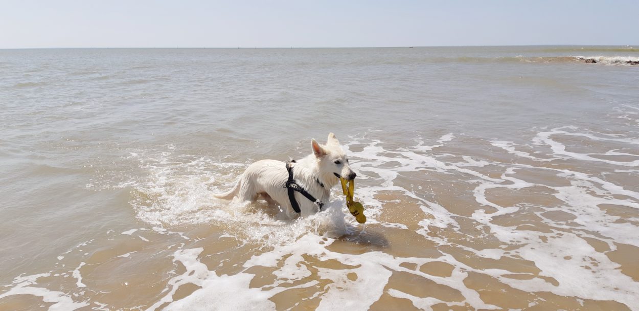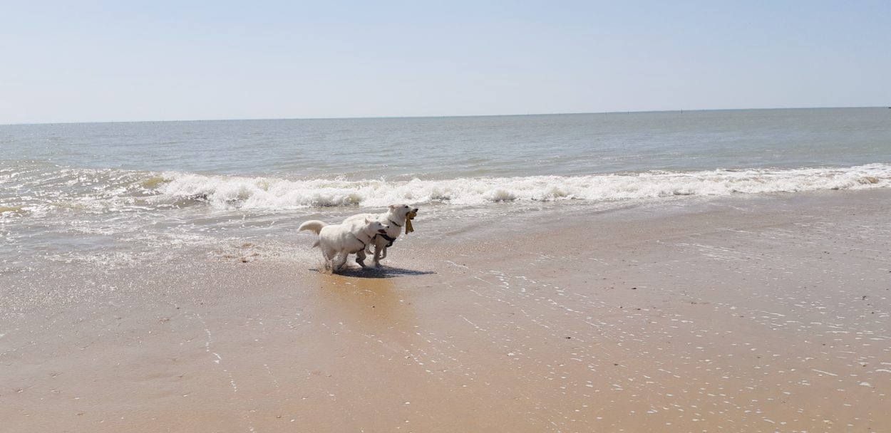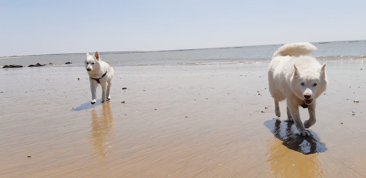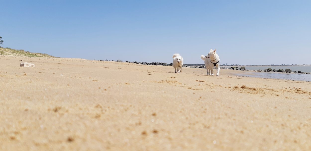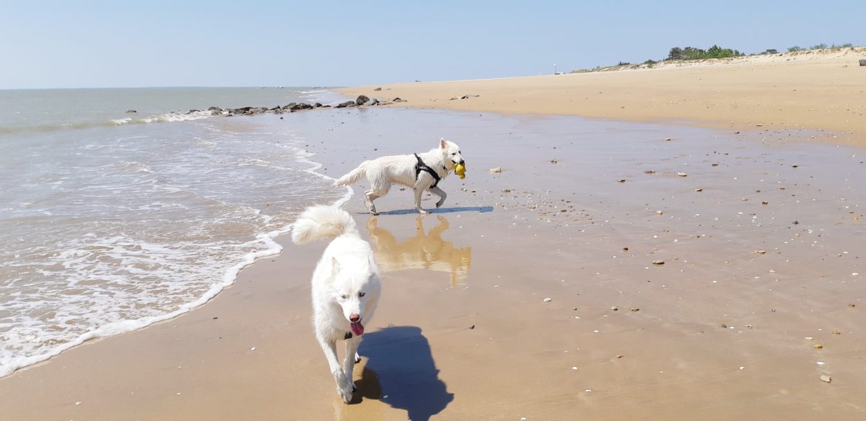 Pendant que le maître était aux Férias de Nîmes ….. pour une visite culturelle évidement Jazzy avait droit à une sortie à la Tranche sur Mer avec sa pote Häagen-Dazs, voici quelques photos :