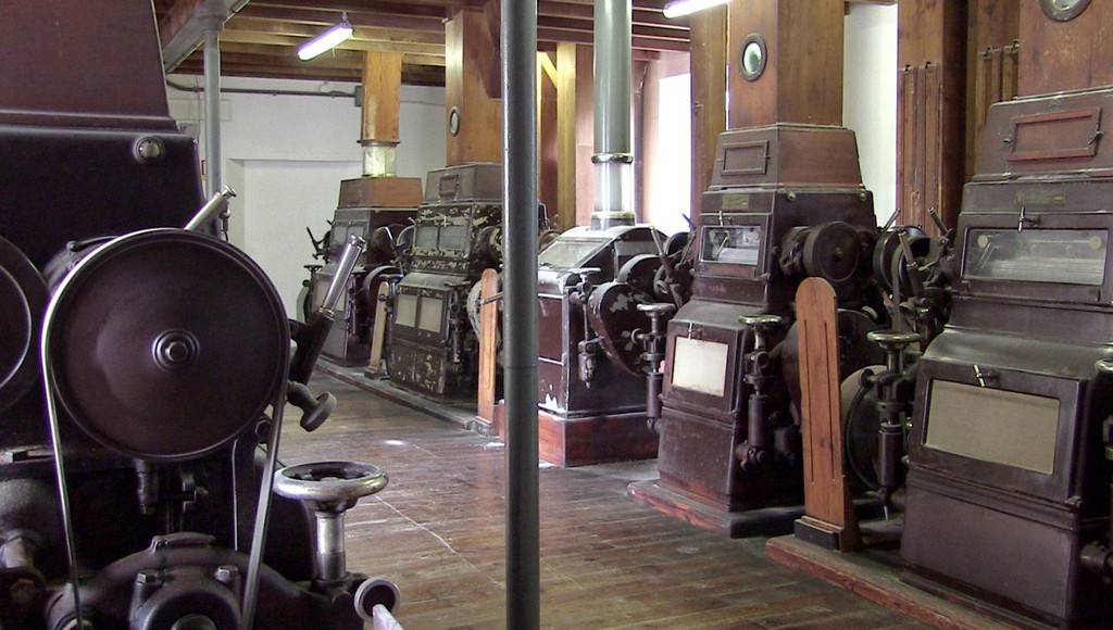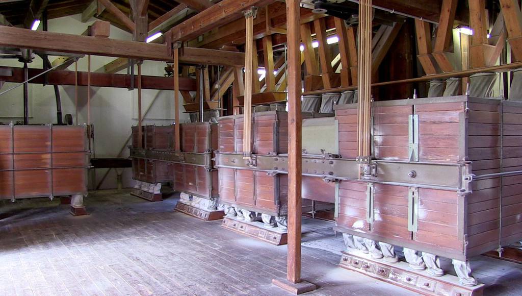Le métier de meunier n’a cessé d’évoluer avec la transformation de l’outil de travail. Jusqu’à la seconde moitié du 19e siècle, la production de farine était assurée par une multitude de petits moulins à eau et à vent. La modernisation des moulins à blé hydrauliques, entre les années 1830 et 1880, a nettement augmenté leur productivité. Cette dernière a encore décuplé, à partir des années 1880, grâce à l’utilisation de machines à cylindres – à la place des meules – et l’installation de systèmes de tamisage et de moyens de transport des produits, qui ont transformé le moulin en minoterie.